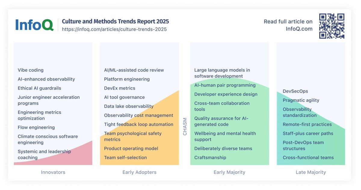 Here is InfoQ’s report on the latest trends in culture and methods. Of course, vibe coding landed in the Innovators segment just three months after the term was coined 🧑💻