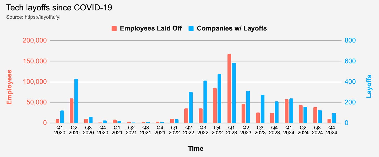 With changing macroeconomics in 2022, many layoffs have hit the Tech industry. A lot of organizational “trimming” happened in 2024 as well.