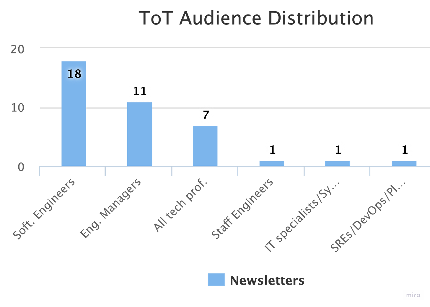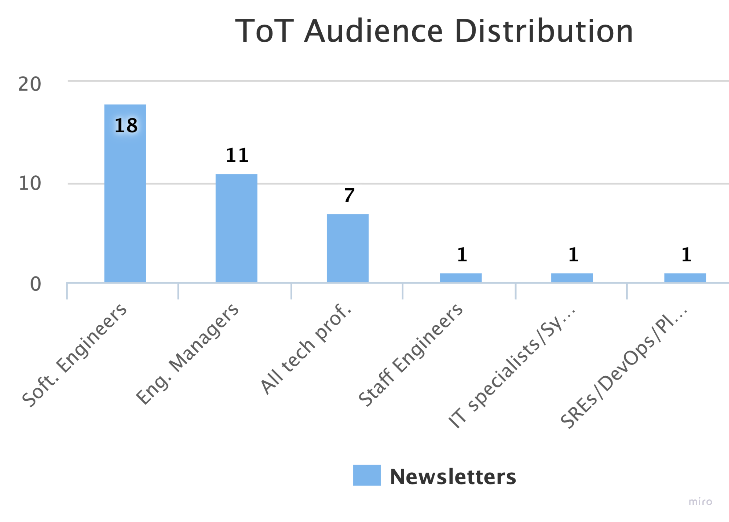This week ended up with a whooping 40+ tech newsletters in my inbox 😮. Some even did not make it in this digest due to email size limitation. Below is a chart showing the distributions of ratings and audiences (both of those are subjective ofc).